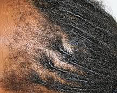Traktion Alopecia ist ein allmählicher Haarausfall oder Ausdünnung, die aufgrund von ständigem Ziehen, gewöhnlich auf starke Belastung des Haares durch Haarstyling, wie Dreadlocks, Zöpfe, enger Pferdeschwanz, Glätteisen etc. zurückzuführen ist.